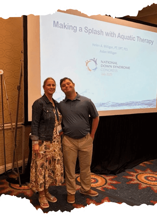 Aidan’s project was multifaceted, but culminated in the opportunity to present at the National Down Syndrome Congress conference in Dallas, Texas, in July 2025. Aiden presented on the benefits of aquatic therapy during a conference session, drawing on his experience as a swimming instructor. He also set up a booth at the conference to sell salsa from his own small business self-starter company, “Aidan’s Salsa”.